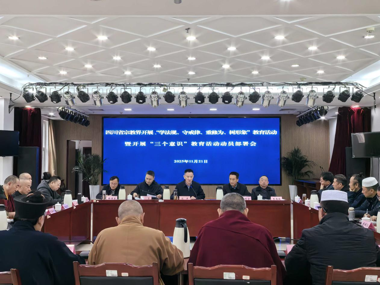 11月21日,四川省宗教界开展“学法规、守戒律、重修为、树形象”教育活动暨“三个意识”(国家意识、公民意识、法治意识)教育活动动员部署会在成都召开。省委统战部副部长、省民族宗教委党组书记陈武出席会议并讲话,省委统战部、省民族宗教委相关负责同志及宗教业务处室主要负责人、各全省性宗教团体领导班子成员、宗教院校主要负责人、相关宗教活动场所负责人参加动员部署会。