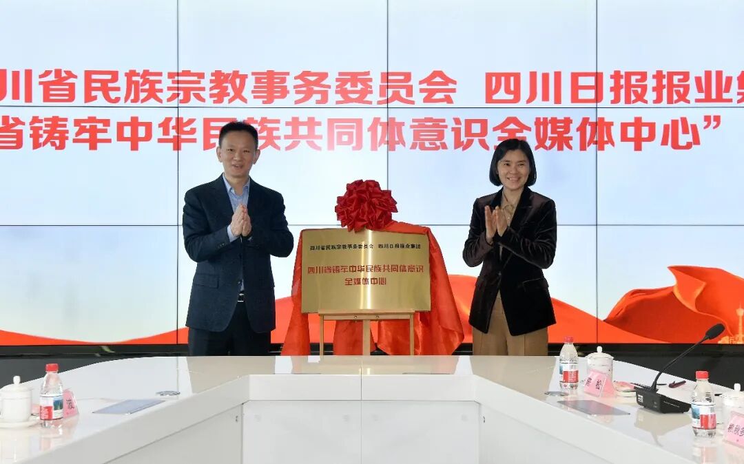 陈武与陈岚共同为“四川省铸牢中华民族共同体意识全媒体中心”揭牌。该中心由省民族宗教委与川报集团共建,是四川构建铸牢中华民族共同体意识宣传教育常态化机制、全面推进中华民族共有精神家园建设的创新举措,对整合媒体资源、打造传播矩阵、加强舆论阵地建设,不断拓展铸牢中华民族共同体意识宣传教育空间,积极营造“中华民族一家亲,同心共筑中国梦”的浓厚氛围具有重要意义。