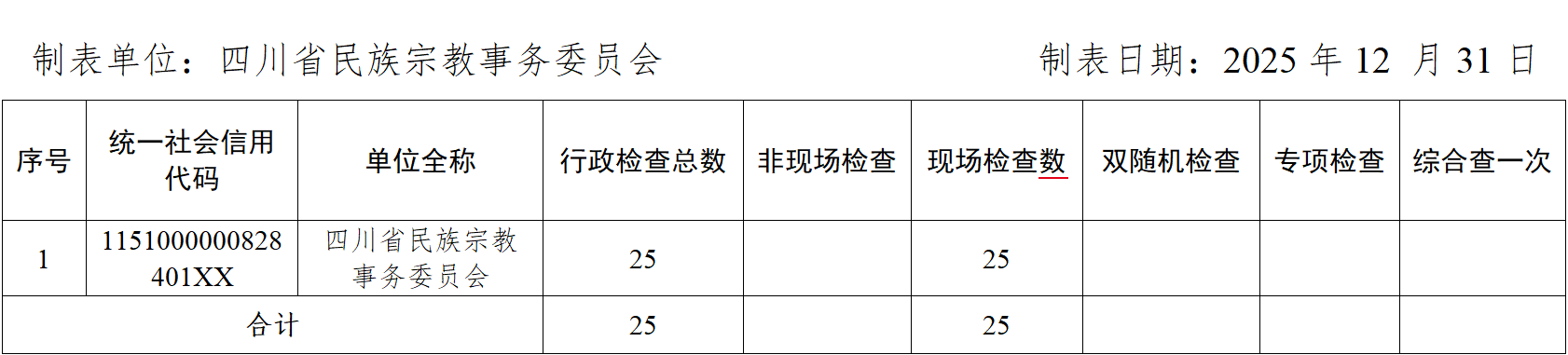 2025年度行政许可、检查、处罚、强制实施情况公示