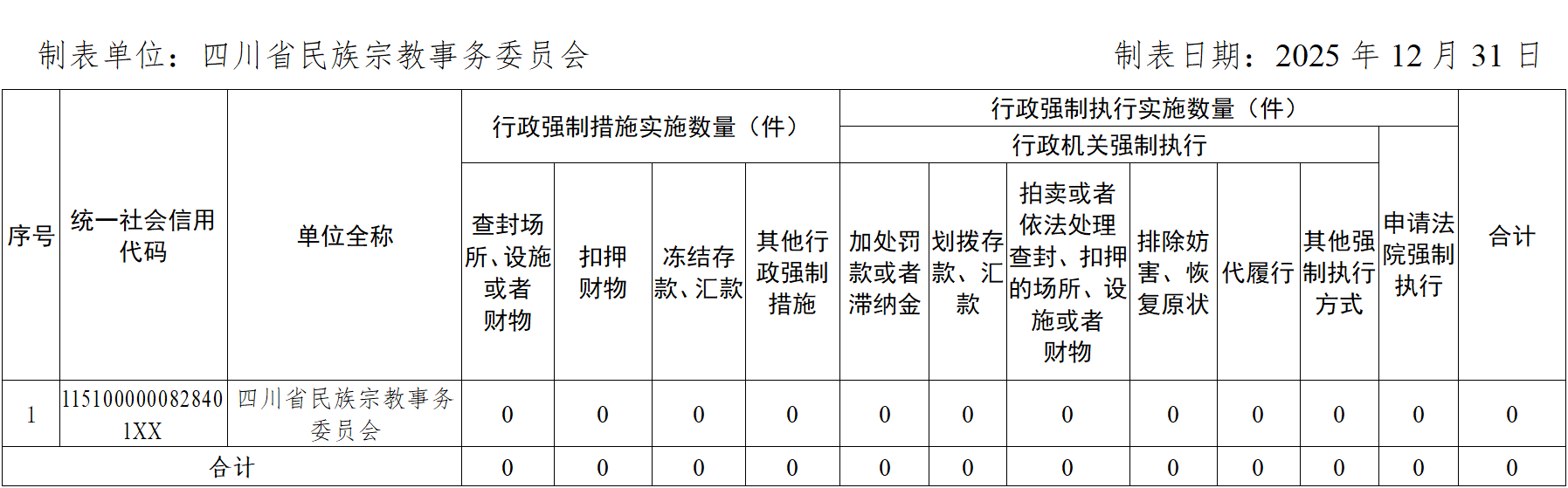 (四)2025年度行政强制实施情况