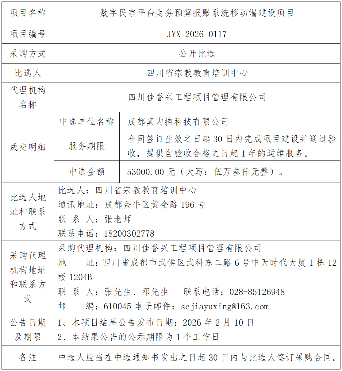 数字民宗平台财务预算报账系统移动端建设项目中选结果公告