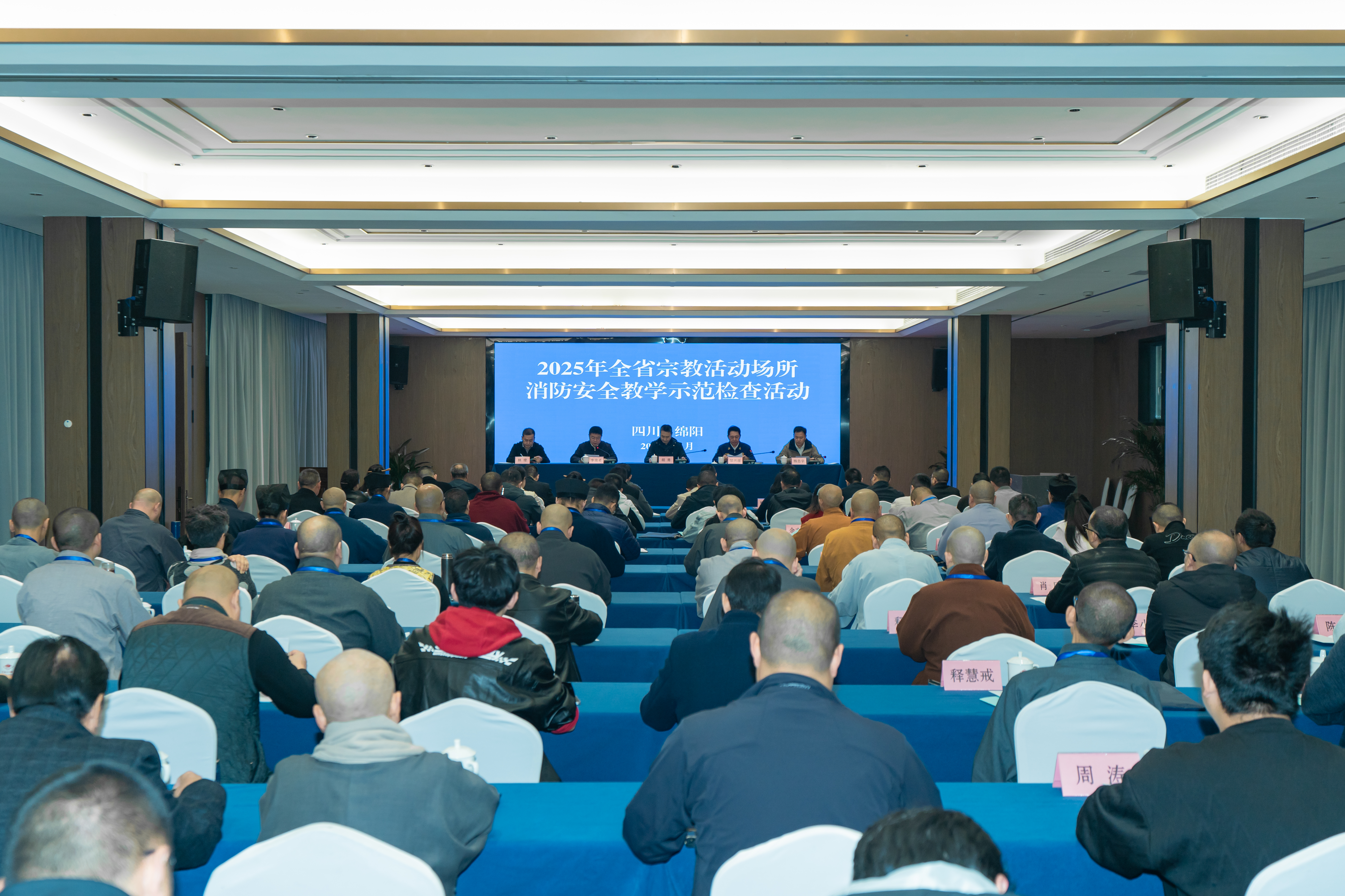 为进一步提升全省宗教活动场所消防安全管理水平,11月5日至6日,省民族宗教委联合省消防救援总队在绵阳市举办2025年全省宗教活动场所消防安全教学示范检查活动。省民族宗教委党组成员、副主任胡勇,省消防救援总队副总队长邹兴连出席活动并讲话。绵阳市委常委、统战部部长李南希出席活动并致辞。