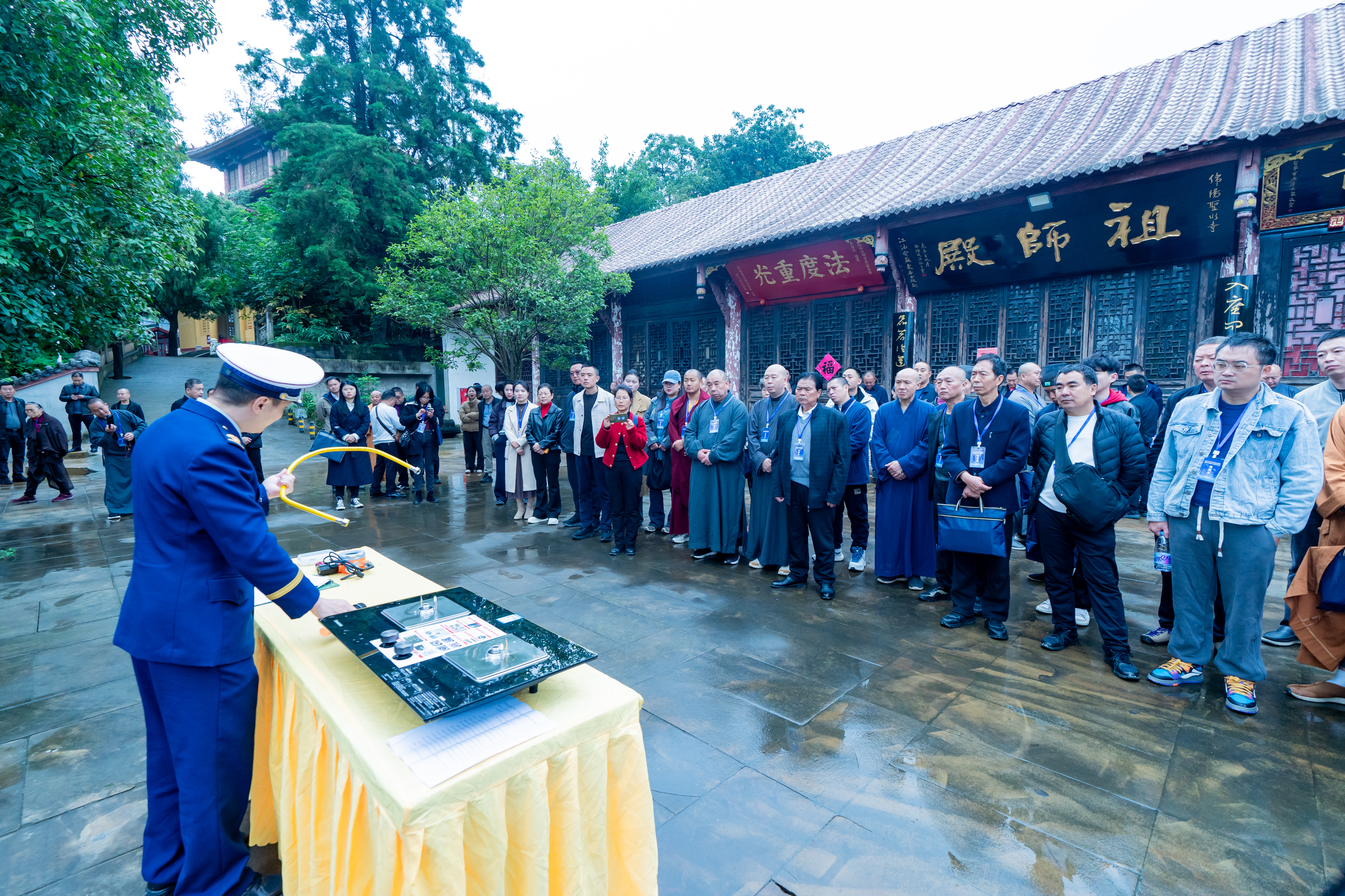 现场教学环节,挑选了位于城区和位于林区的两类典型宗教活动场所,各有侧重开展教学示范检查。在涪城区圣水寺,聚焦人员密集、周边环境复杂等特点,重点讲解了节前安全隐患排查和殿堂、厨房、香烛燃放区等区域的安全管控,演示了灭火器、消防水带、消防面罩等的实操使用方法。在科技城新区大觉寺,民宗、消防部门联动演示了现场问题隐患排查、消防安全巡查制度落实、智慧消防火灾预警、火情初期处置等关键环节,对发现的问题隐患现场“开方”,下达整改意见书,为各地开展常态化检查树立了规范样本。