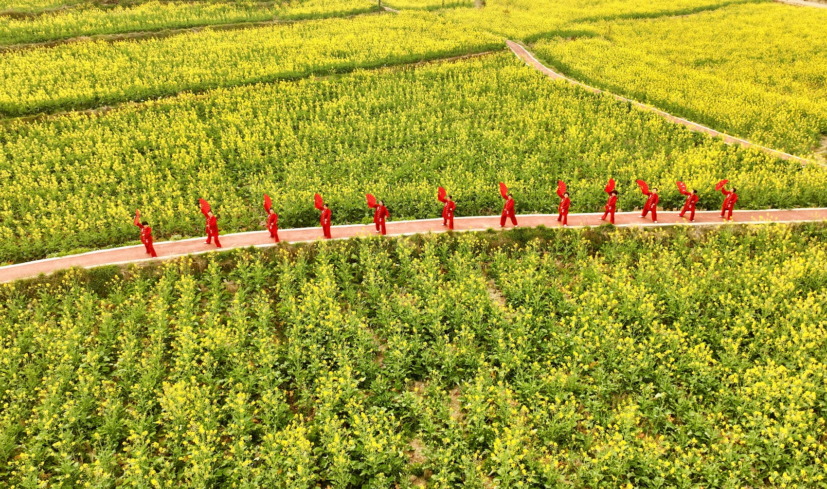 仁寿县青岗乡的田野上,各族群众其乐融融。