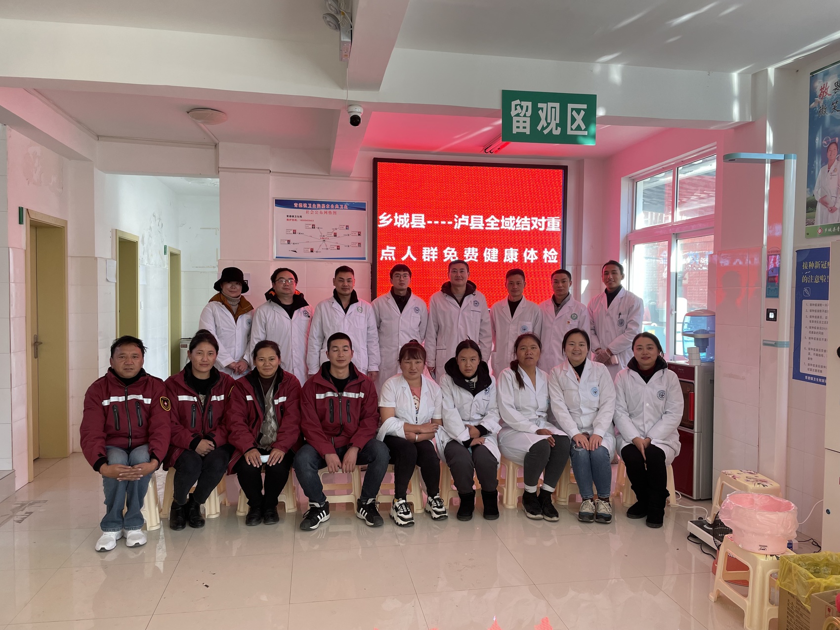 陈维刚(后排右4)和妻子文艺蓉(前排右2)一起参加全域结对重点人群健康体检