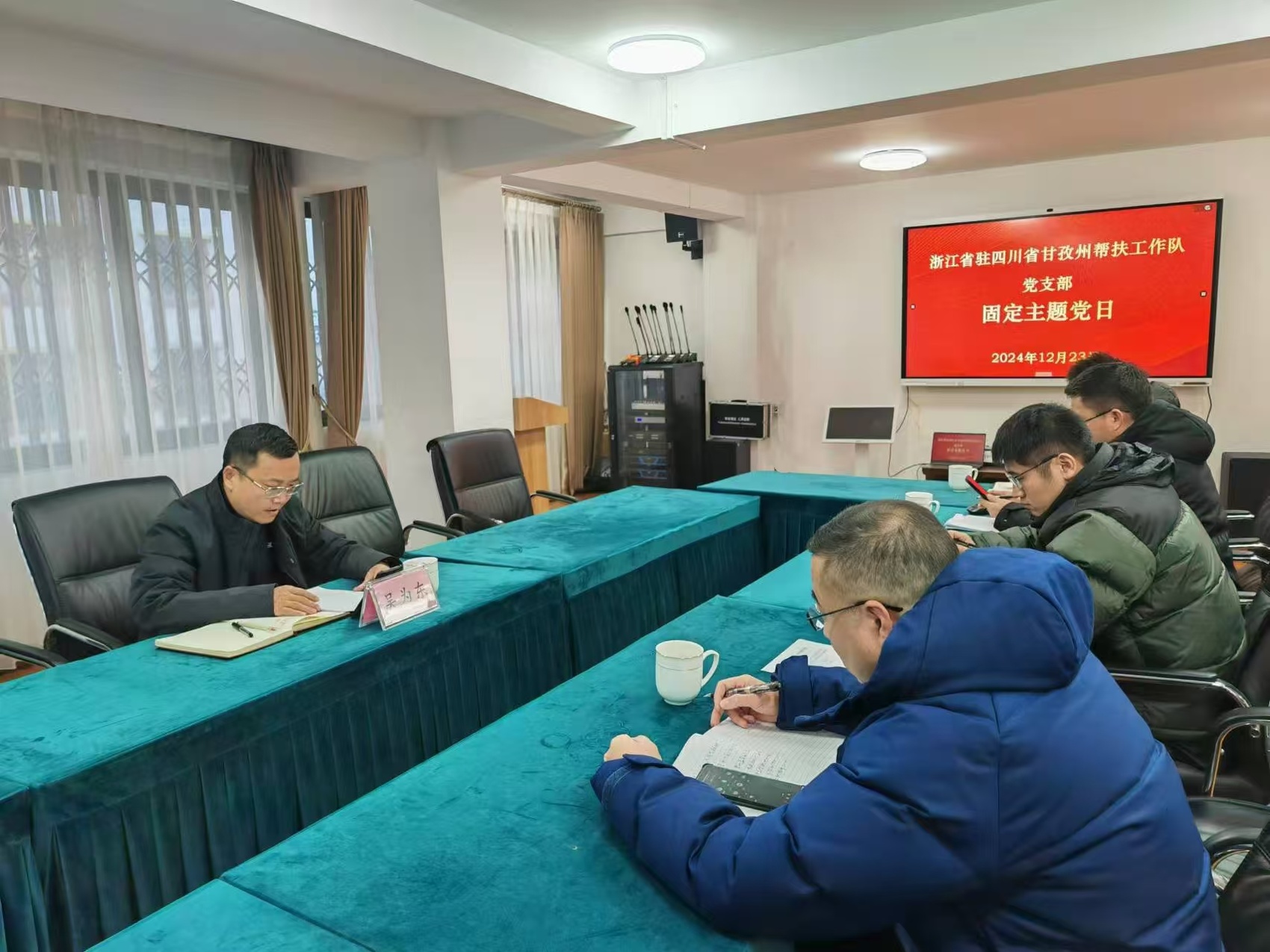 浙江帮扶工作队坚持把政治建设摆在首位。从帮扶工作启动初期,工作队就成立临时党支部及4个党小组,组建党员先锋队,夯实组织基础。构建“理论学习+实践淬炼+制度保障”三维培养体系。通过学习课会、干部座谈、实地调研等形式,推动全体队员深刻把握“国之大者”的战略内涵,自觉把“铸牢中华民族共同体意识”主线贯穿援建全过程。在“9·5”泸定地震救援过程中,工作队党员干部连夜挺进震中磨西镇,帮助转移受灾群众300余人,让党旗在抢险一线高高飘扬。