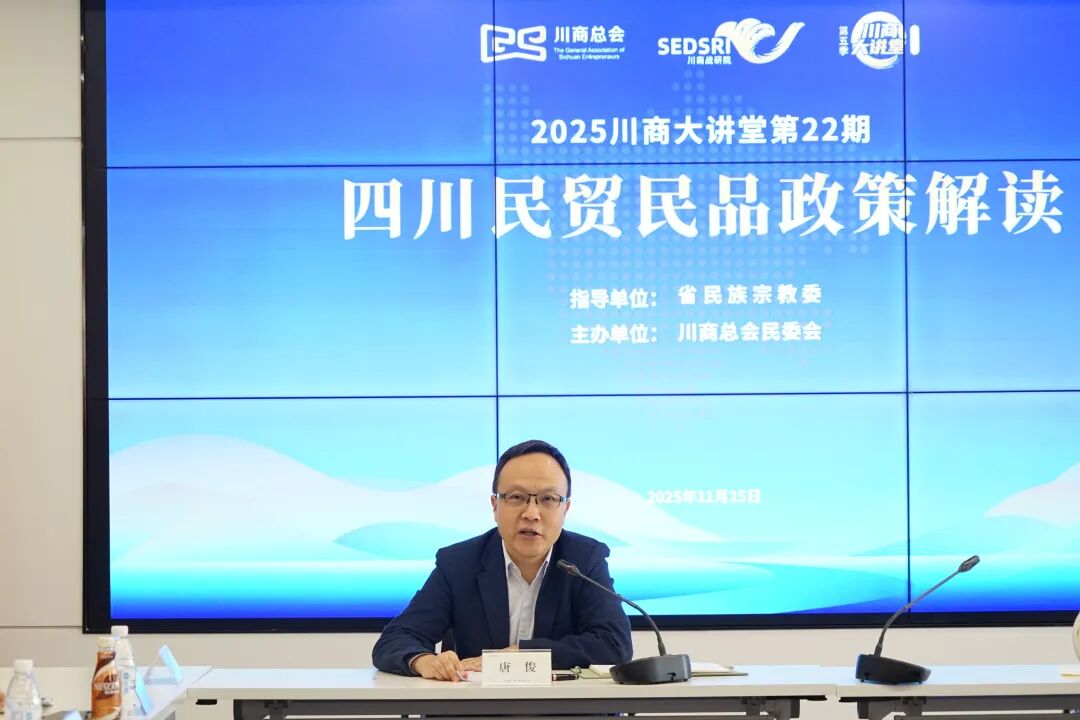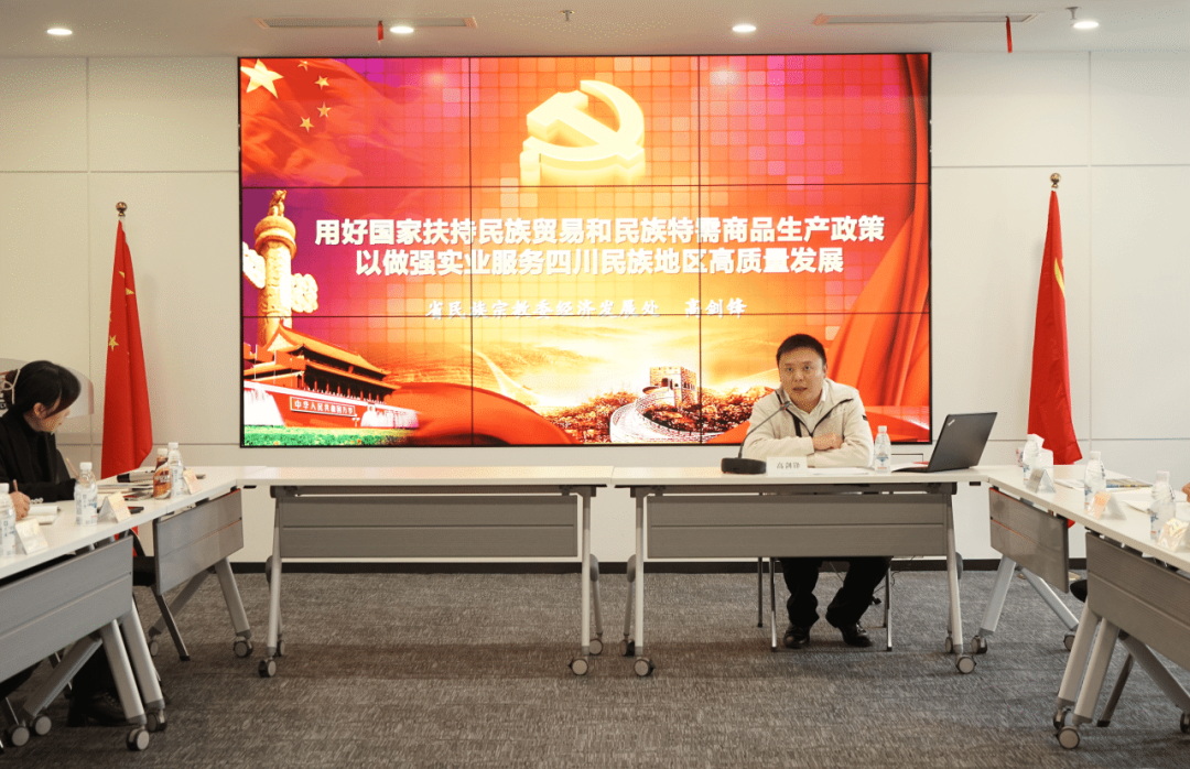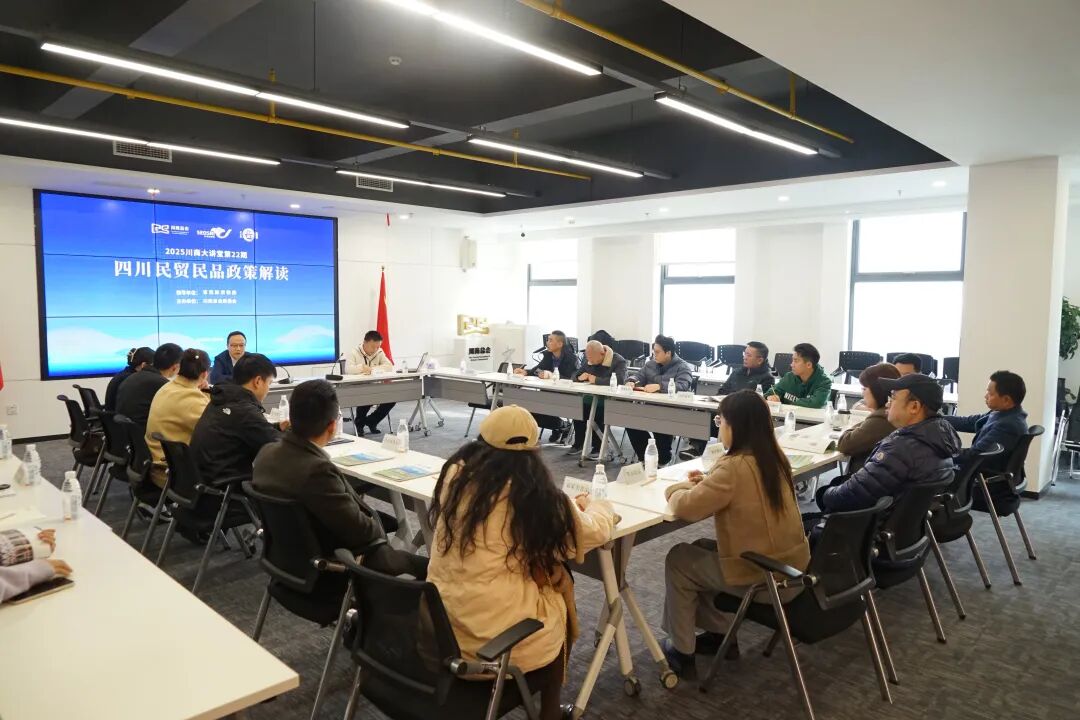 11月25日下午,在省民宗委的指导和支持下,川商总会民族团结进步产业合作专委会(简称“民委会”)成功举办了“民贸民品政策解读”活动。此次活动是民委会成立后的首场活动,吸引了约30位企业代表参加,包括川商总会理事、绵阳辉达粮油有限公司董事长罗麟,A咖啡品牌创始人陈晓程,以及民委会成员企业、四川民贸民品企业和民族地区企业代表。民委会副会长、省民宗委经济处副处长高剑锋,川商总会党委副书记、执行秘书长、民委会副会长唐俊出席活动。